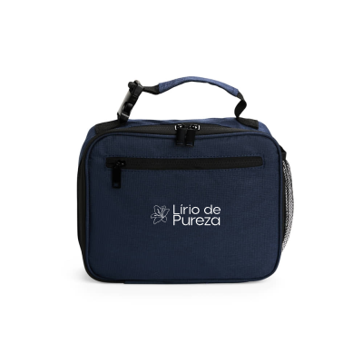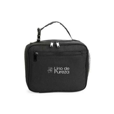 Bolsa térmica em poliéster impermeável com fechamento em zíper e capacidade de até 6 litros. Possui revestimento térmico interno em PEVA atóxico e compartimento em tela de nylon. Apresenta bolso frontal com zíper e bolso telado com elástico, além de alça de mão com engate rápido.