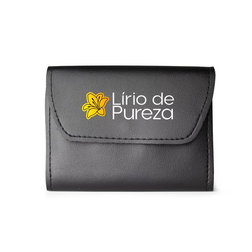 Kit manicure 16 peças em estojo de couro sintético estilo envelope, contém: tesoura, alicate de cutícula, pinça, 3 cortadores de unha, lixa, 2 bisturis, raspador, empurrador de cutícula, removedor de cutícula, espátula dupla para limpeza das unhas, limpador de ouvido, palito de unha e espátula para ouvido.